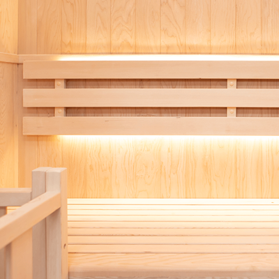 With the two-tiered bench choose the temperature at which you wish to enjoy your sauna. A lower temperature for your first session and the higher bench for deeper sweating.
